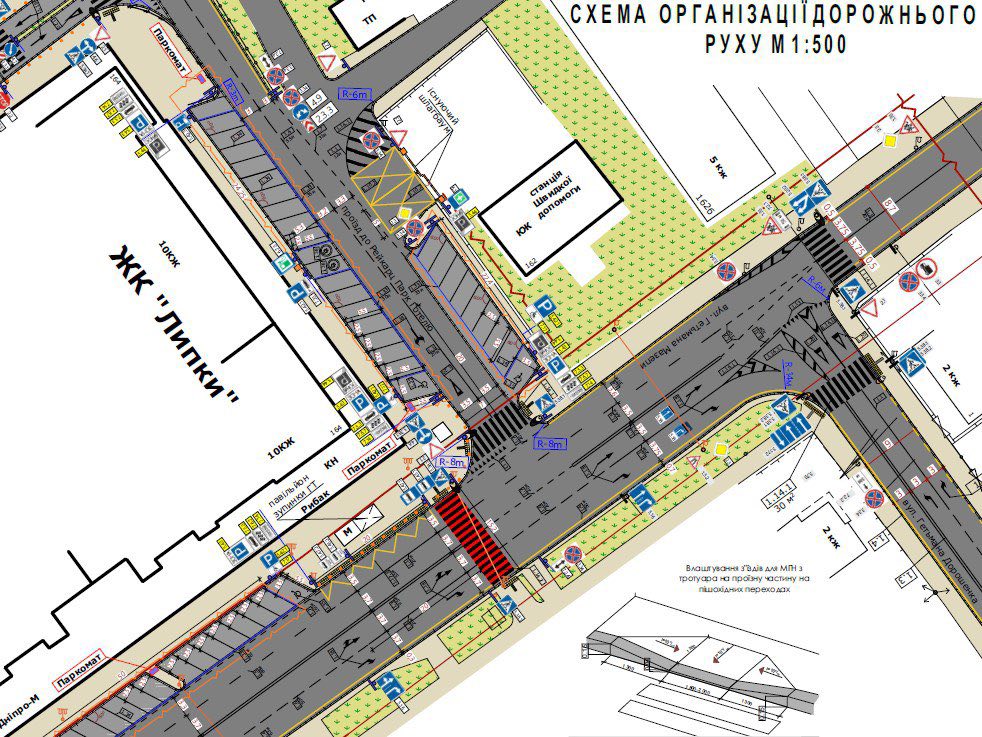 - вул. Г. Мазепи (біля ЖК «Липки», заїзд/виїзд до Reikartz Park Hotel) — 127 місць, з них 14 місць для осіб з інвалідністю.