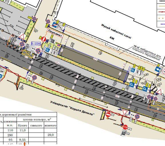 - вул. Коновальця (від Січових Стрільців до Сахарова) — 38 місць, з них 4 місця для осіб з інвалідністю;