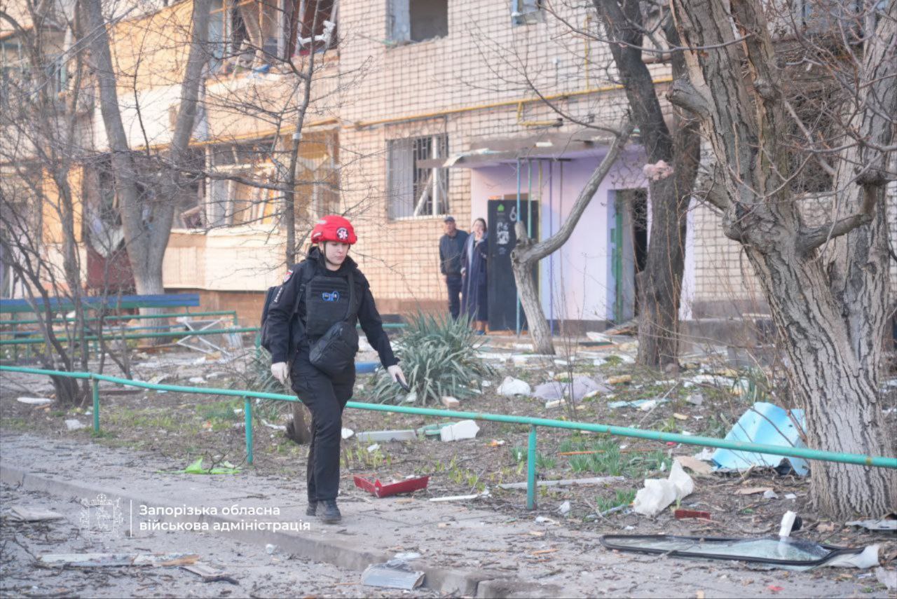 Вдень, 14 березня росіяни атакували житловий квартал Запоріжжя. Одна людина загинула, ще сім постраждали. Також з-під завалів рятувальники дістали поранену жінку.
