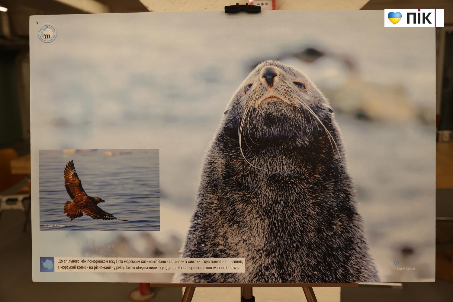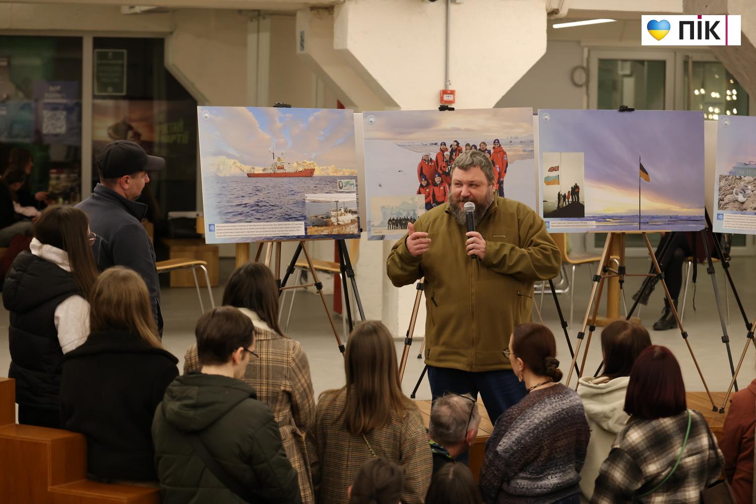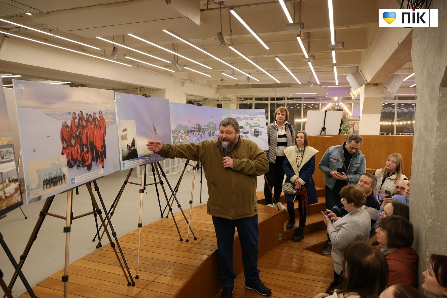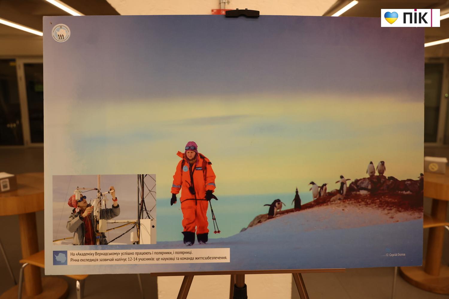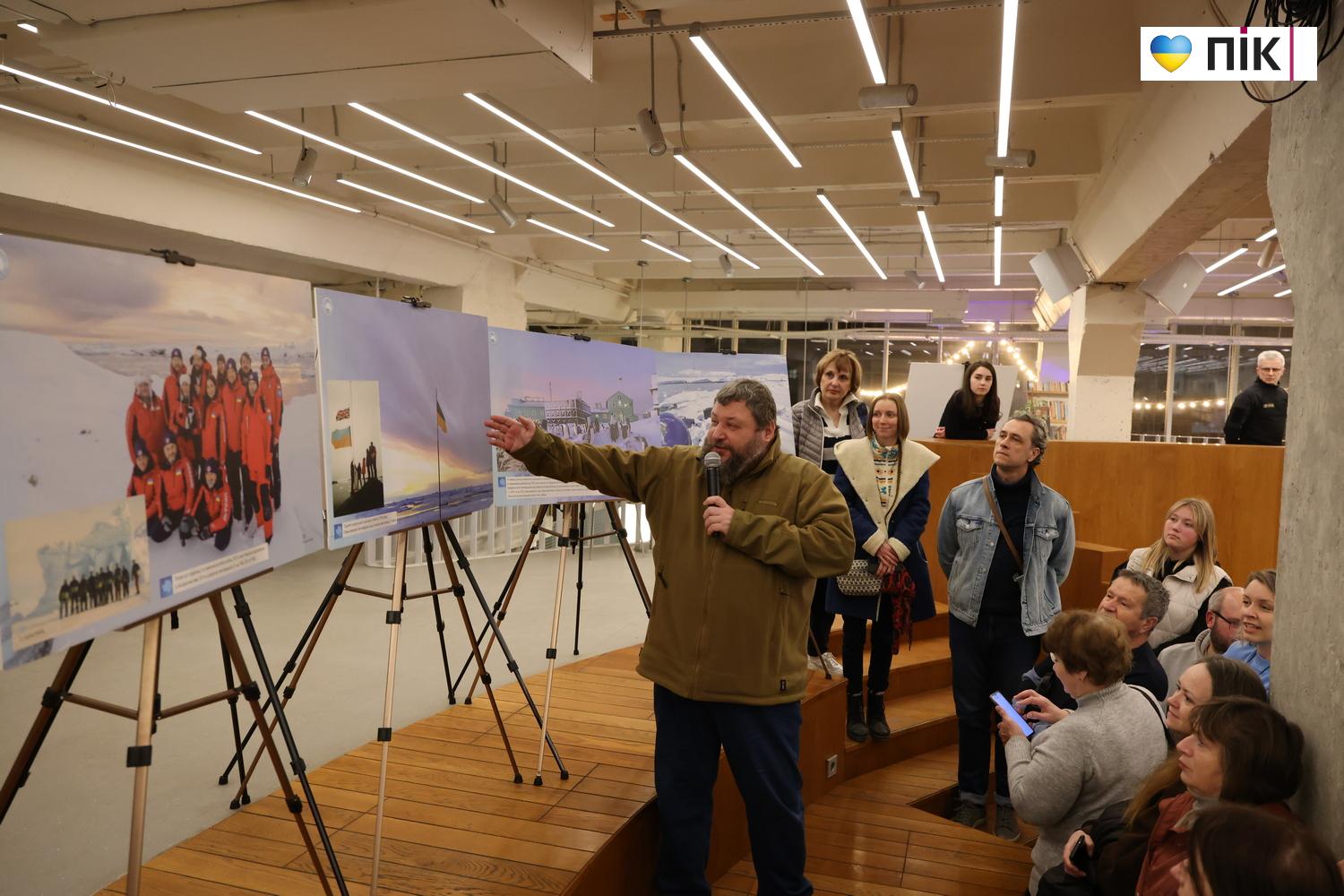 На виставці представлені 30 фото про життя та дослідження українців в Антарктиці, природу далекого континенту, зміну клімату.  Побував на відкритті фотокор ПІК Тарас Яковин.
