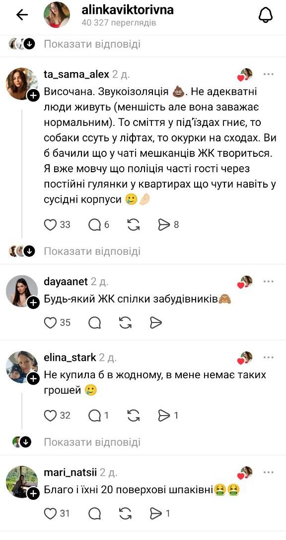 Скарги різняться — від якості будівництва до умов проживання та інфраструктури.