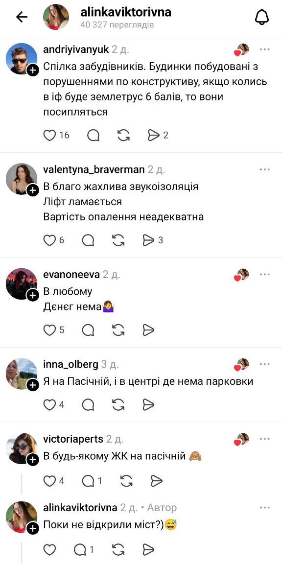 Обговорення показує: головна проблема — не лише в окремих ЖК, а в підході до забудови міста загалом. Франківці дедалі більше звертають увагу не на красиві рендери, а на реальні умови життя — якість будівництва, інфраструктуру та комфорт середовища.