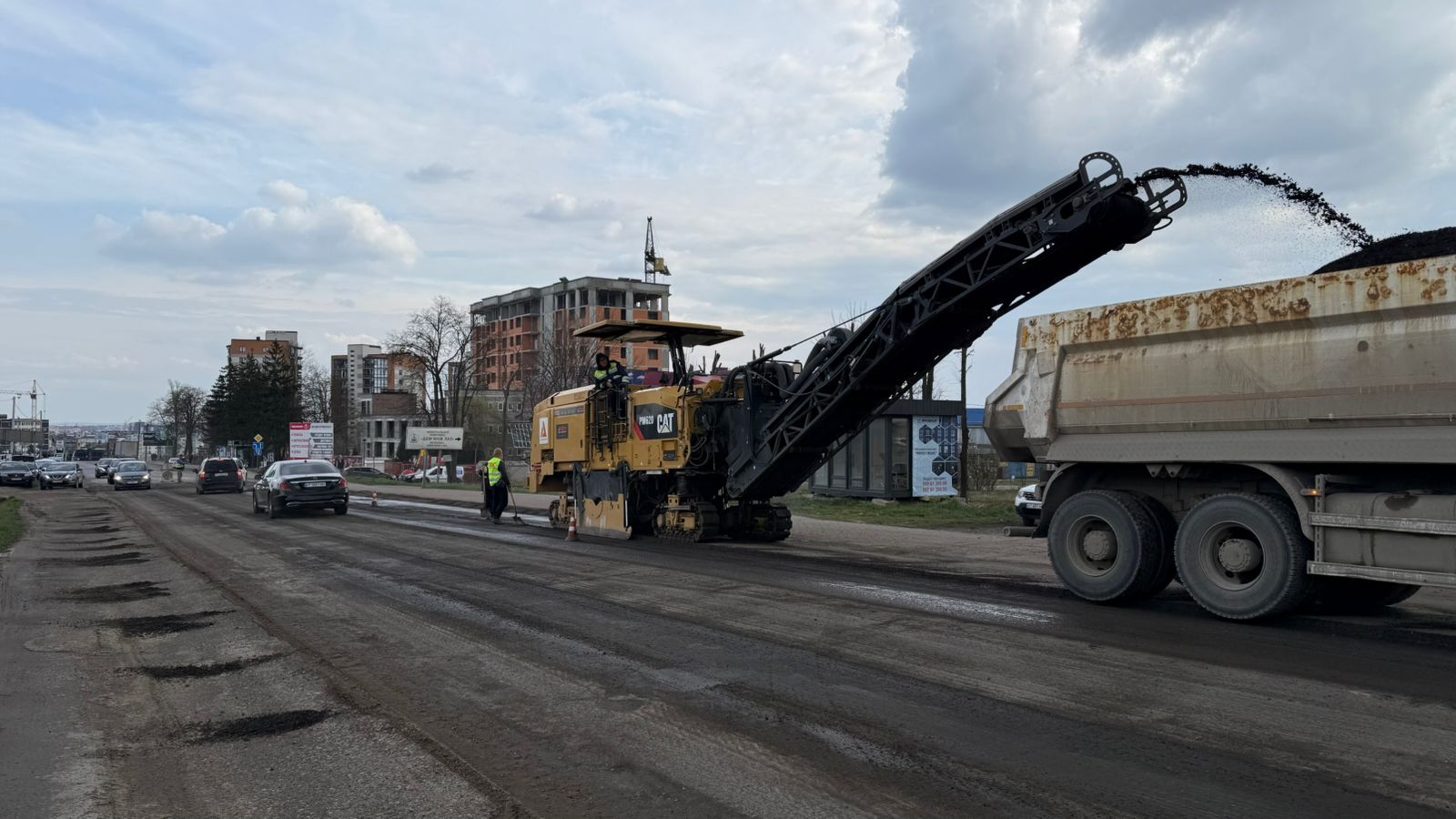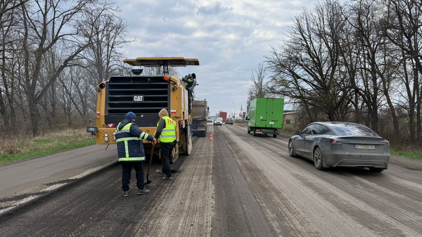 Як зазначають, дорожнє покриття на цій ділянці зношене. Тож ремонт здійснюється локальними картами, із фрезеруванням старого дорожнього одягу.