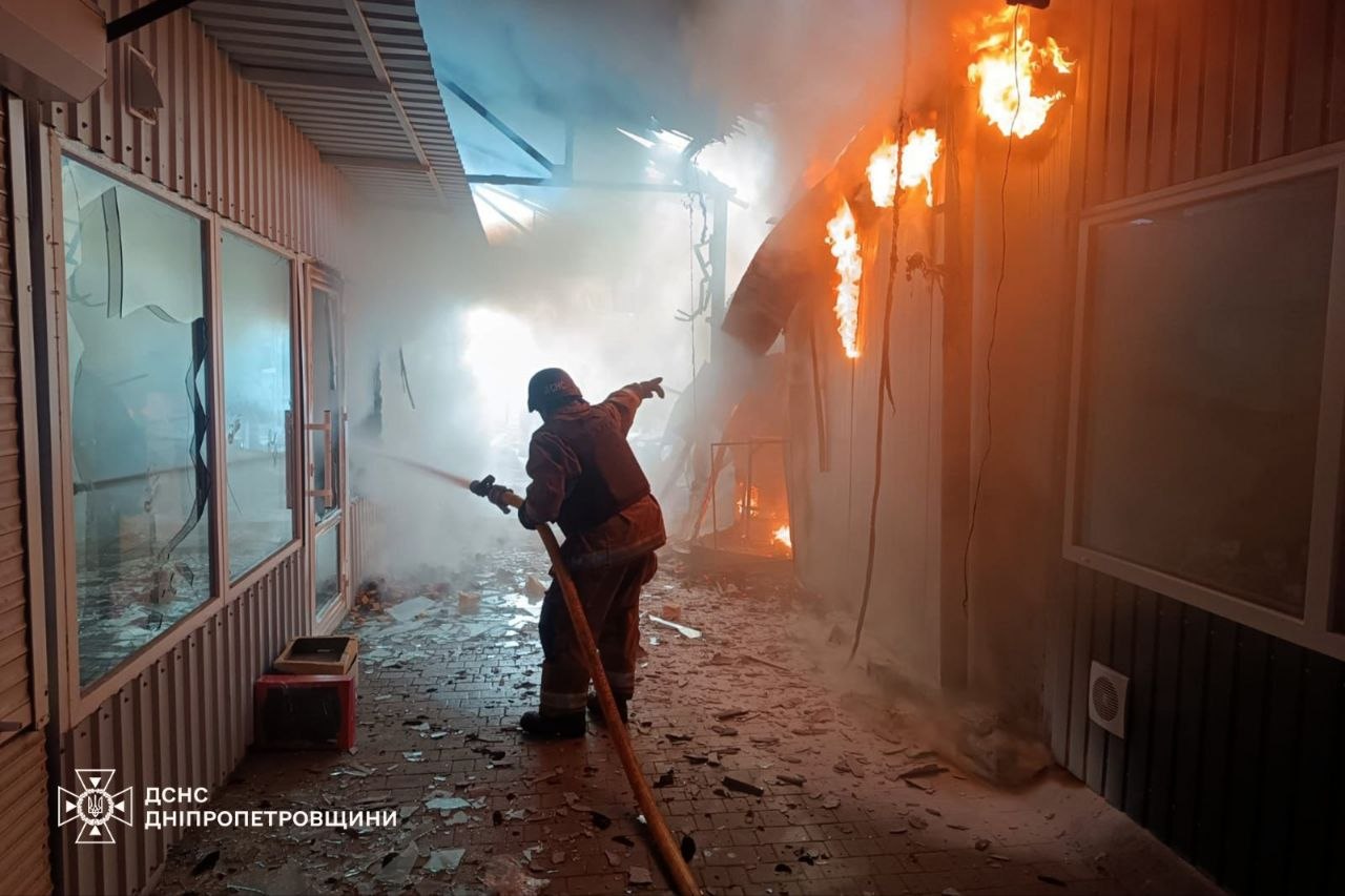 Виникли пожежі, пошкоджені торговельні павільйони та магазин.