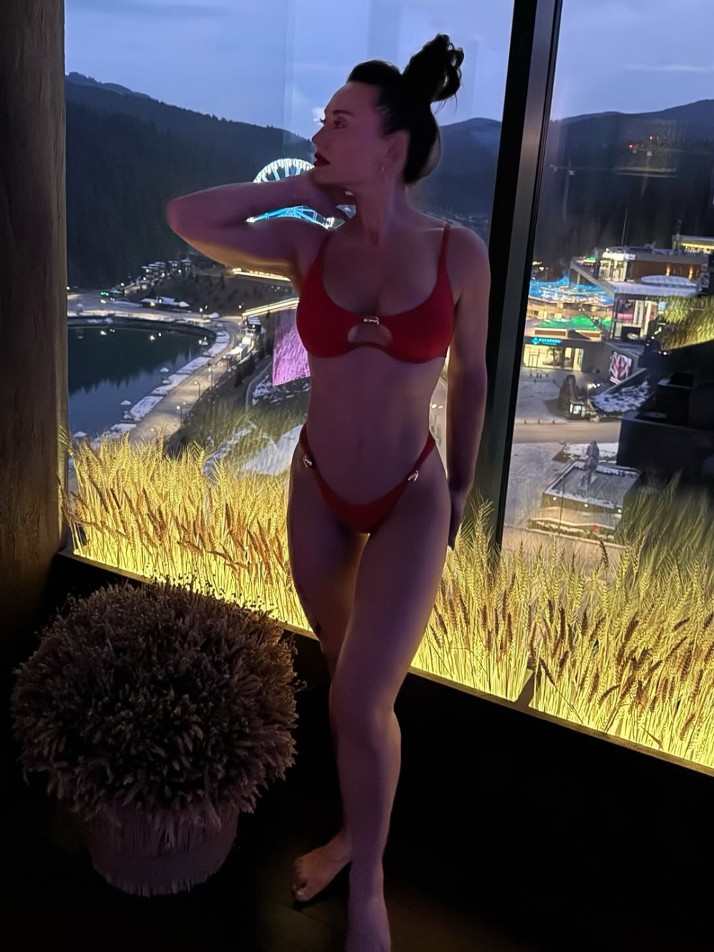 Відповідні фото зірка опублікувала на своїй сторінці в Instagram. На знімках вона позує на тлі гірських пейзажів у різних купальниках — як суцільних, так і більш відкритих.