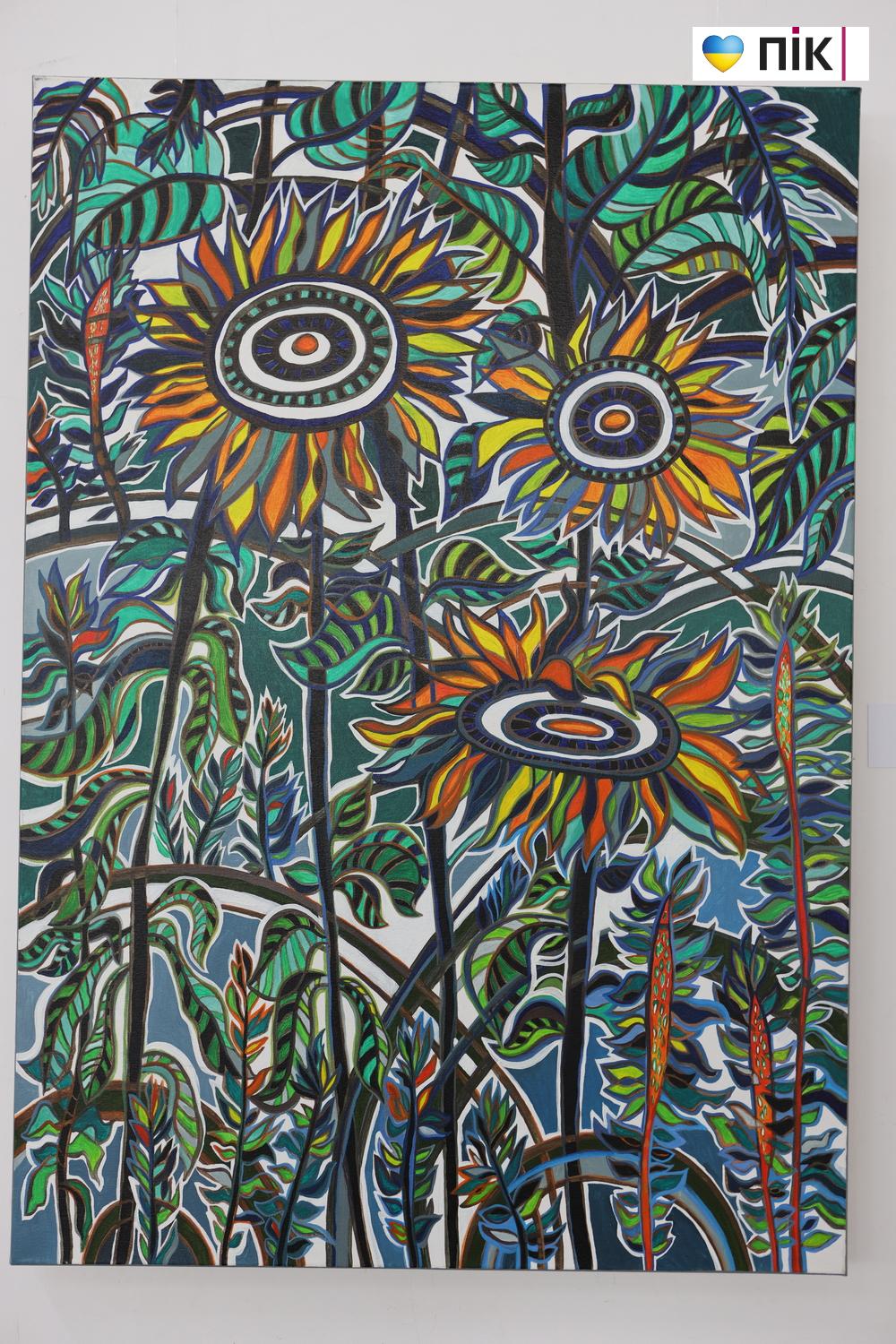 Особливістю експозиції є яскраво виражена декоративність та площинна композиція. Полотна побудовані як ритмічні орнаментальні структури, що нагадують килимові візерунки.
