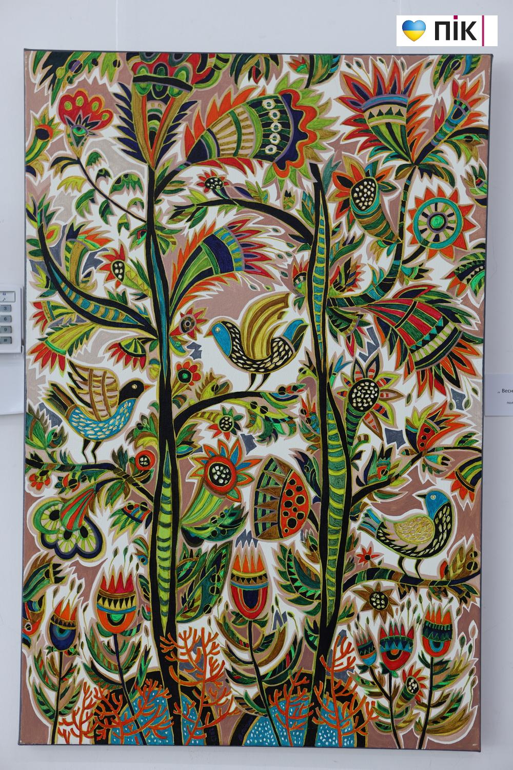 В основі виставки — образи природи як носіїв глибоких символів. Центральними мотивами стали «Дерево Життя», квіти та птахи, які авторка переосмислює через сучасний декоративний живопис.